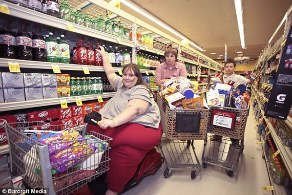 Una vez al mes, Susanne Eman, visita el supermercado para hacer la compra mensual. Asegura quepuede llegar a tardar unas 8 horas en hacer la compra y que necesita 6 carros para transportar todo, además de la ayuda de sus dos hijos y de su vehículo motorizado.